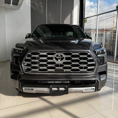 La Sequoia Capstone 2025 es la versión más exclusiva y refinada de la línea Sequoia. Equipada con el potente sistema híbrido i-FORCE MAX Twin Turbo V6 y tracción 4WD, combina alto desempeño con eficiencia. Su interior premium incluye detalles en madera auténtica, tapicería en cuero perforado y tecnología de última generación como la pantalla táctil de 14", Head-Up Display y sistema de audio JBL®. La Capstone es la opción ideal para quienes buscan un SUV imponente, cómodo y absolutamente sofisticado.